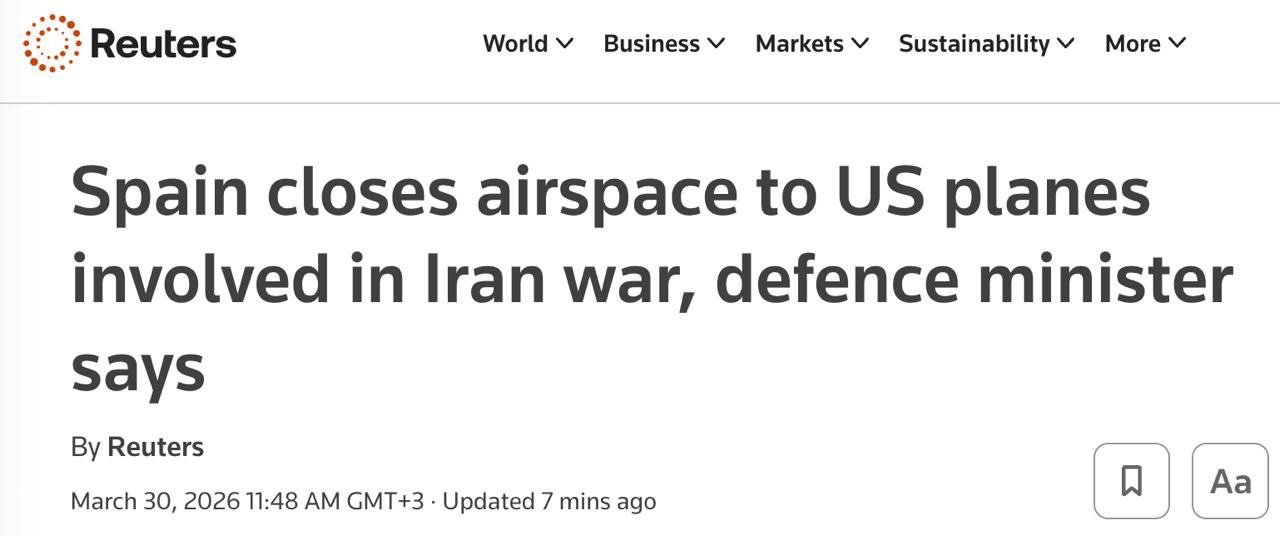 [Photo] 🇪🇸🇺🇸Spain has closed its airspace to American aircraft involved in strikes on Iran.