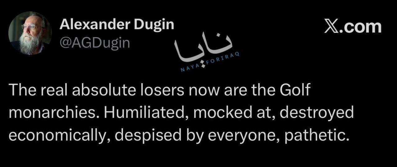 Russian philosopher Alexander Dugin: The real absolute losers are now the Gulf monarchies; humiliated, ridiculed, economically destroyed, despised by everyone, and pathethic.