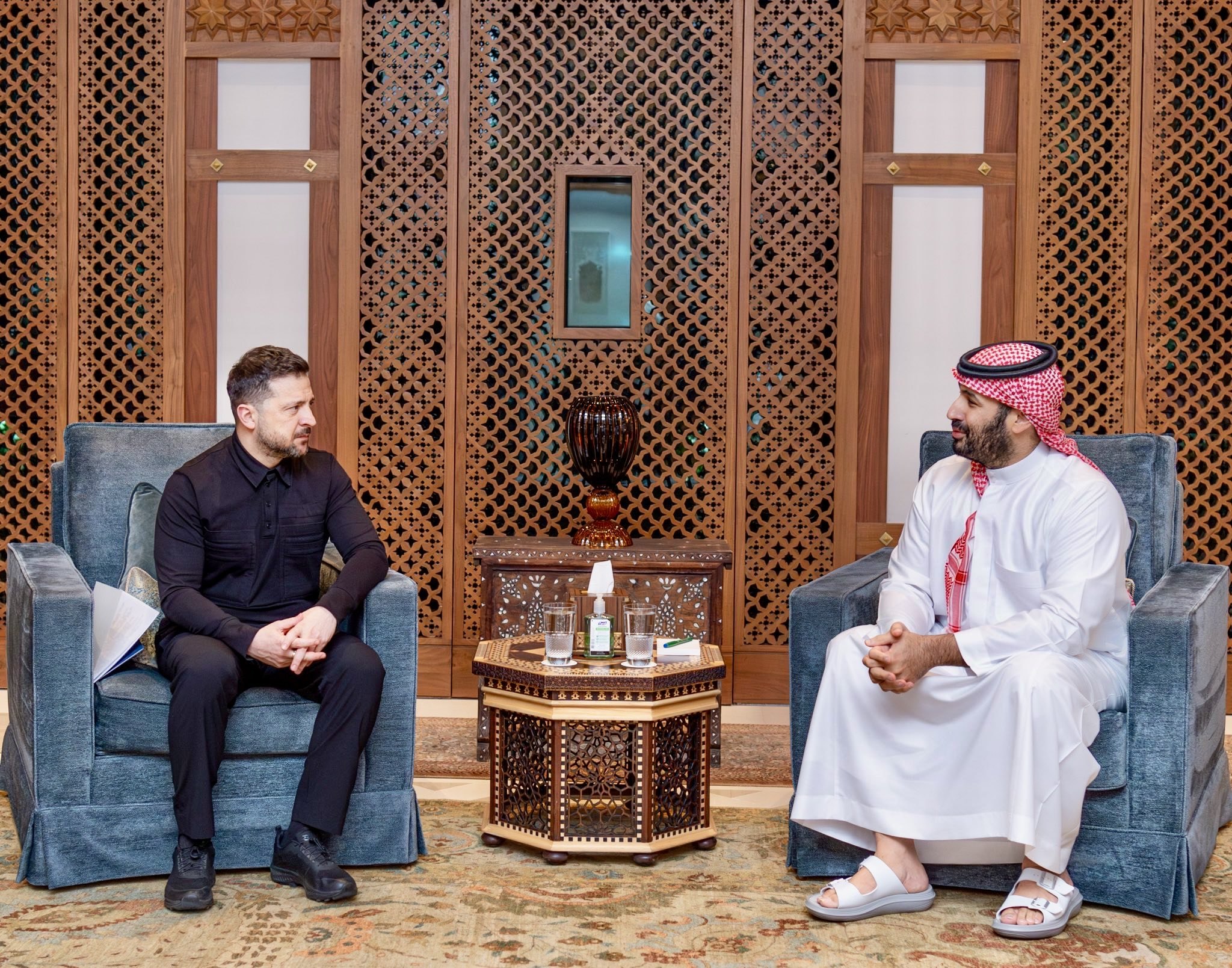 JUST IN: Ukrainian President Zelensky meets Saudi Crown Prince Mohammed bin Salman in Jeddah, Saudi Arabia.@BRICSNews