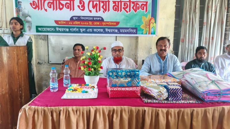 ময়মনসিংহের ঈশ্বরগঞ্জ গার্লস স্কুল এন্ড কলেজে এসএসসি ও ভোকেশনাল পরীক্ষার্থীদের বিদায় উপলক্ষে আলোচনা সভা ও দোয়া মাহফিল অনুষ্ঠিত হয়েছে। বৃহস্পতিবার (১৬ এপ্রিল) বেলা ১টায় প্রতিষ্ঠানটির নিজস্ব হলরুমে এই বিদায় অনুষ্ঠানের আয়োজন করা হয়। শিক্ষার্থীদের বিদায়বেলায় পুরো স্কুল প্রাঙ্গণে এক আবেগঘন পরিবেশের সৃষ্টি হয়। প্রতিষ্ঠানের অধ্যক্ষ কামরুল আলমের সভাপতিত্বে অনুষ্ঠিত আলোচনা সভায় প্রধান বক্তা হিসেবে তিনি শিক্ষার্থীদের জীবনের নতুন অধ্যায়ের গুরুত্ব তুলে ধরেন। বিদায়ী শিক্ষার্থীদের উদ্দেশ্যে তিনি বলেন, আজকের এই বিদায় কোনো শেষ বিদায় নয়, বরং এটি তোমাদের নতুন জীবনের এক গুরুত্বপূর্ণ অধ্যায়ের সূচনা। আত্মবিশ্বাস, সততা ও কঠোর পরিশ্রমই তোমাদের সাফল্যের মূল চাবিকাঠি। তিনি আরও বলেন, এই প্রতিষ্ঠানের শিক্ষার্থীরা তাদের মেধা ও চমৎকার ফলাফলের মাধ্যমে ভবিষ্যতে ঈশ্বরগঞ্জ গার্লস স্কুল এন্ড কলেজের সুনাম অক্ষুণ্ণ রাখবে বলে আশাবাদ ব্যক্ত করেন। অনুষ্ঠানে শিক্ষার্থীদের ভবিষ্যৎ জীবনের সাফল্য কামনা করে বক্তব্য রাখেন প্রতিষ্ঠানের গর্ভনিং বডির সদস্য ও অভিভাবক সাইফুল ইসলাম তালুকদার, প্রভাষক সিরাজুল ইসলাম, সামিউন বাশির, সহকারী প্রধান শিক্ষক মো.