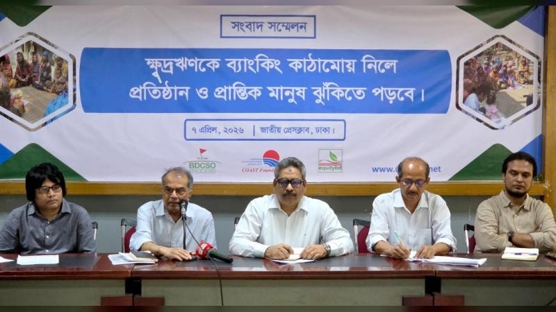 ঢাকায় অনুষ্ঠিত এক সংবাদ সম্মেলনে নাগরিক সমাজের প্রতিনিধিরা অন্তর্বর্তীকালীন সরকারের প্রস্তাবিত ‘ক্ষুদ্রঋণ ব্যাংক অধ্যাদেশ–২০২৫’ অবিলম্বে বাতিল করার দাবি জানিয়েছেন। ৭ এপ্রিল ২০২৫ তারিখে এক সংবাদ সম্মেলনে বক্তারা অভিযোগ করেন যে, এই অধ্যাদেশের মাধ্যমে ব্যাংকিং ব্যবস্থার আড়ালে ক্ষুদ্রঋণ খাতকে ধ্বংস করার সুস্পষ্ট নীলনকশা বাস্তবায়নের চেষ্টা চলছে এবং কোনো ধরনের কর্পোরেট আগ্রাসন মেনে নেওয়া হবে না। উল্লেখ্য, বর্তমান সরকার অন্তর্বর্তীকালীন সরকারের প্রণীত যে ১৬টি অধ্যাদেশকে অধিকতর শক্তিশালী করার জন্য স্থগিত রেখেছে তার মধ্যে ‘ক্ষুদ্রঋণ ব্যাংক অধ্যাদেশ–২০২৫’ও রয়েছে।বক্তারা প্রশ্ন তোলেন, দেশে বিদ্যমান ৬৭টি ব্যাংক পরিচালনায় যেখানে বাংলাদেশ ব্যাংককেই নানা চ্যালেঞ্জের মুখে পড়তে হয়, সেখানে শত শত এনজিও ও ক্ষুদ্রঋণ প্রতিষ্ঠানকে ব্যাংকিং ব্যবস্থার আওতায় আনা হলে তা কীভাবে কার্যকরভাবে নিয়ন্ত্রণ ও পরিচালনা করা সম্ভব হবে।তারা আরও বলেন, অধ্যাদেশের মাধ্যমে ঝুঁকি সৃষ্টি না করে বরং সঞ্চয়ের সুযোগ সম্প্রসারণের মাধ্যমে ক্ষুদ্রঋণ প্রতিষ্ঠানগুলোকে আরও আর্থিকভাবে শক্তিশালী করার উদ্যোগ নিতে হবে। একইসঙ্গে, পাবলিক ডিমান্ড রিকভারি অ্যাক্টের আওতায় সার্টিফিকেট মামলা দায়েরের সুযোগ প্রদান করতে হবে যাতে অর্থ আত্মসাৎ প্রতিরোধ করা যায়। ক্ষুদ্রঋণ খাতের তদারকির দায়িত্ব বাংলাদেশ ব্যাংকের কাছে না দিয়ে বরং মাইক্রোক্রেডিট রেগুলেটরি অথরিটি (এমআরএ), পল্লী কর্ম সহায়ক ফাউন্ডেশন (পিকেএসএফ) এবং এনজিও ব্যুরোর মতো বিদ্যমান প্রতিষ্ঠানগুলোকে আরও শক্তিশালী করতে হবে এবং তাদের নিজস্ব কাঠামোর মধ্যেই তাদের কাজ করতে দিতে হবে।৭ এপ্রিল, মঙ্গলবার, ঢাকার জাতীয় প্রেস ক্লাবের ভিআইপি লাউঞ্জে কোস্ট ফাউন্ডেশন, ইক্যুইটিবিডি এবং বিডিসিএসও প্রসেস কর্তৃক আয়োজিত “ক্ষুদ্রঋণকে ব্যাংকিং কাঠামোয় রূপান্তরের ঝুঁকি” শীর্ষক সংবাদ সম্মেলনে বক্তারা এসকল দাবিসমূহ তুলে ধরেন। কোস্ট ফাউন্ডেশন-এর নির্বাহী পরিচালক ও ইক্যুইটিবিডি-এর প্রধান সঞ্চালক রেজাউল করিম চৌধুরীর সভাপতিত্বে অনুষ্ঠিত এই সংবাদ সম্মেলনে বক্তব্য রাখেন কোস্ট ফাউন্ডেশনের ক্ষুদ্রঋণ পরিচালক সৈয়দ আমিনুল হক, ইক্যুইটিবিডির সমন্বয়ক ওমর ফারুক ভুইয়া, বিডিসিএসও প্রসেস-এর এম.