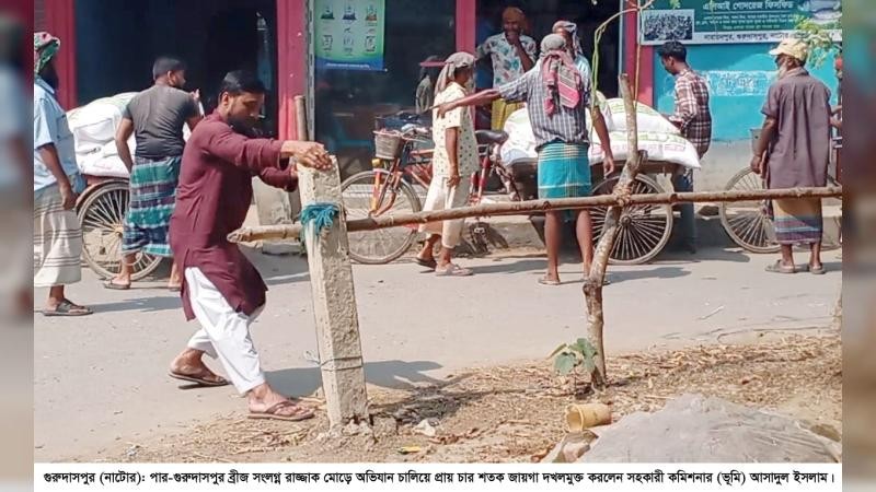 গুরুদাসপুরে সড়কের ৪ শতক সরকারি জায়গা দখলমুক্ত করল প্রশাসন