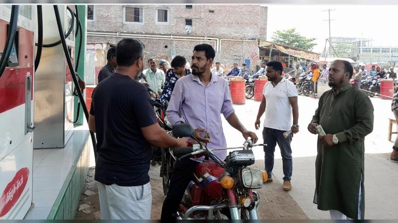 নন্দীগ্রামে তীব্র রোদ-গরম উপেক্ষা করে জ্বালানি তেলের জন্য দীর্ঘ লাইন