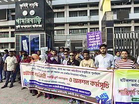 বকেয়া বেতনের দাবিতে খামারবাড়িতে আউটসোর্সিং কর্মীদের অবস্থান কর্মসূচি