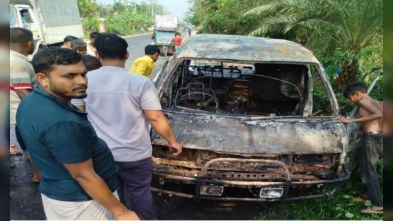 বগুড়ায় তীব্র দাবদাহে চলন্ত মাইক্রোবাসে আগুন