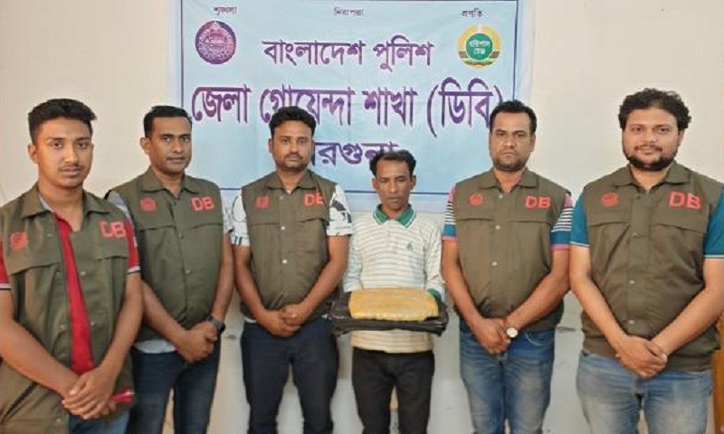 বরগুনায় ডিবি পুলিশের অভিযানে ১ কেজি গাঁজাসহ গ্রেফতার ১