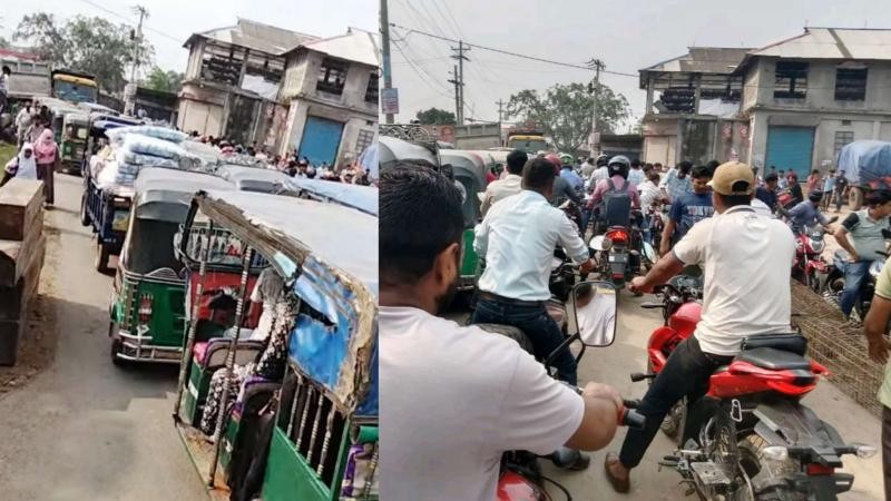 বুড়িচংয়ে তেলের জন্য বাইকারদের দীর্ঘ লাইন, সড়কে তীব্র যানজট