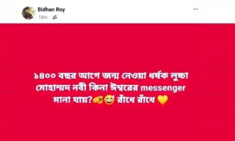 হজরত মুহাম্মদ (সা.)-কে নিয়ে কটূক্তি ও কুরুচিপূর্ণ মন্তব্য করার প্রতিবাদে হেফাজতে ইসলাম বাংলাদেশ প্রতিবাদ সভা ও বিক্ষোভ মিছিল করেছে।বুধবার (১ এপ্রিল) সকাল এগারোটায় উপজেলার নেকমরদ বাজারের গরুহাটি থেকে রাণীশংকৈল, বালিয়াডাঙ্গী, পীরগঞ্জ, হরিপুর থানা শাখার হেফাজত ইসলামের আয়োজনে এ প্রতিবাদ সভা ও বিক্ষোভ মিছিল করা হয়। এসময় মুসলিম সমাজের বিভিন্ন সংগঠনের ব্যানারে হাজার হাজার মুসল্লি অংশ নেন।বিক্ষোভ মিছিলটি প্রধান প্রধান সড়ক প্রদক্ষিণ শেষে নেকমরদ চৌরাস্তা মোড়ে এক প্রতিবাদ সমাবেশ করে।এর আগে ঠাকুরগাঁওয়ের রাণীশংকৈল উপজেলায় সামাজিক যোগাযোগ মাধ্যম ফেসবুকে মহানবী হযরত মুহাম্মদ (সা.)-কে নিয়ে অবমাননাকর ও আপত্তিকর মন্তব্যের অভিযোগে বিধান রায় (২৫) নামের এক যুবককে গ্রেপ্তার করে পুলিশ। সে ওই এলাকার মলিন চন্দ্র রায়ের ছেলে।গত শুক্রবার দুপুরে উপজেলার নেকমরদ ইউনিয়নের পারকুন্ডা গ্রাম থেকে তাকে আটক করা হয়।পুলিশ ও স্থানীয় সূত্রে জানা গেছে, অভিযুক্ত বিধান রায় তার ব্যক্তিগত ফেসবুক আইডি থেকে মহানবী (সা.)-কে নিয়ে অত্যন্ত কুরুচিপূর্ণ ও আপত্তিকর একটি পোস্ট দেন। মুহূর্তের মধ্যেই পোস্টটি সামাজিক যোগাযোগ মাধ্যমে ছড়িয়ে পড়লে স্থানীয় ধর্মপ্রাণ মুসলমানদের মধ্যে তীব্র ক্ষোভ ও উত্তেজনার সৃষ্টি হয়। পরিস্থিতি উত্তপ্ত হতে থাকলে স্থানীয়রা পুলিশকে খবর দেয়।খবর পেয়ে রাণীশংকৈল থানা পুলিশ দ্রুত ঘটনাস্থলে পৌঁছে স্থানীয়দের শান্ত করার চেষ্টা করে এবং সহযোগিতার ভিত্তিতে অভিযুক্ত বিধান রায়কে গ্রেপ্তার করে থানায় নিয়ে আসে। পরে ওই এলাকায় অতিরিক্ত পুলিশ মোতায়েন করা হয়েছে।আটক বিধান রায়ের দৃষ্টান্তমূলক শাস্তির দাবিতে প্রতিবাদ সভা ও বিক্ষোভ সমাবেশ করেন তারা। অনতিবিলম্বে তার ফাঁসির দাবি জানান হেফাজত নেতারা।এ বিষয়ে রাণীশংকৈল থানার ভারপ্রাপ্ত কর্মকর্তা (ওসি) আমানুল্লাহ আল বারী ঘটনার সত্যতা নিশ্চিত করে বলেন, ফেসবুকে ধর্মীয় অনুভূতিতে আঘাত দেওয়ার অভিযোগে ওই যুবককে গ্রেপ্তার করা হয়েছে। তাকে ওইদিনই আদালতের মাধ্যমে জেল হাজতে পাঠানো হয়েছে। বিষয়টি নিয়ে অধিকতর তদন্ত চলছে এবং বর্তমানে এলাকার পরিস্থিতি স্বাভাবিক রয়েছে।