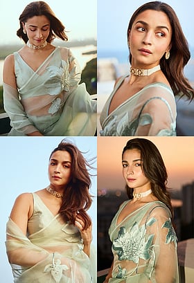 সম্প্রতি চেন্নাইয়ের এক অনুষ্ঠানে অংশ নেওয়ার জন্য আলিয়া ভাট বেছে নিয়েছিলেন মিন্ট গ্রিন শাড়ি। সূক্ষ্ম ফ্লোরাল এমব্রয়ডারিতে সাজানো এই শাড়ি তাঁর লুকে তৈরি করেছে যেন এক স্বপ্নময় আবহ।