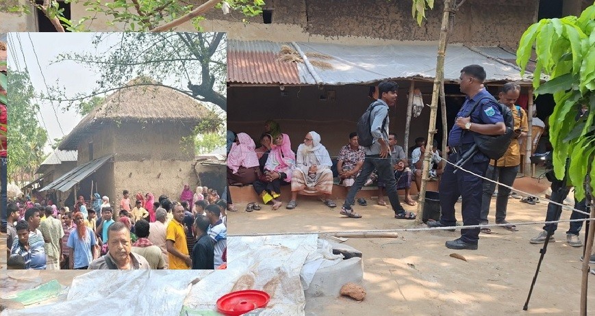 নওগাঁর নিয়ামতপুর উপজেলায় একই পরিবারের চারজনকে নৃশংসভাবে গলা কেটে হত্যা করেছে দুর্বৃত্তরা। সোমবার (২০ এপ্রিল) দিবাগত রাতে উপজেলার বাহাদুরপুর ইউনিয়নের বাহাদুরপুর গ্রামে এ ঘটনা ঘটে। হত্যাকাণ্ডের পর পুরো এলাকায় শোক ও আতঙ্ক ছড়িয়ে পড়েছে। নিহতরা হলেন- হাবিবুর রহমান (৩৫), তার স্ত্রী পপি সুলতানা (৩০), ছেলে পারভেজ হোসেন (১০) এবং মেয়ে সাদিয়া আক্তার (৩)। তাদের মধ্যে বাবা-মাকে গলা কেটে হত্যা করা হয় এবং দুই শিশুকে মাথায় আঘাত করে হত্যা করা হয়েছে। স্থানীয় সূত্রে জানা যায়, রাতের কোনো এক সময় বাড়ির ভেতরেই দুর্বৃত্তরা পরিবারের সদস্যদের ওপর হামলা চালায়। পরে সকালে প্রতিবেশীরা বাড়ির ভেতরে রক্তাক্ত মরদেহ দেখতে পেয়ে পুলিশে খবর দেন। খবর পেয়ে নিয়ামতপুর থানা পুলিশ ঘটনাস্থলে গিয়ে মরদেহ উদ্ধার করে। পরে সুরতহাল প্রতিবেদন তৈরি করে ময়নাতদন্তের জন্য মরদেহ পাঠানোর প্রক্রিয়া শুরু করা হয়। স্থানীয়রা জানান, মঙ্গলবার ভোরে নিহত হাবিবুর রহমানের বাবা নমির হোসেন ঘরের সামনে রক্ত দেখতে পান। সন্দেহ হলে তিনি ঘরে ঢুকে খাটের ওপর চাদর দিয়ে ঢাকা অবস্থায় চারজনের মরদেহ দেখতে পান। তার চিৎকারে আশপাশের লোকজন ছুটে আসে। পুলিশ ও স্থানীয় সূত্রে জানা গেছে, হাবিবুর রহমান পেশায় গরু ব্যবসায়ী ছিলেন। সোমবার মান্দার চৌবাড়িয়া হাটে গরু বিক্রি করে রাত ৮টার দিকে বাড়ি ফেরেন। তার কাছে প্রায় ২ লাখ ৮০ হাজার টাকা ছিল। প্রাথমিকভাবে পুলিশের ধারণা, ওই টাকা ও বাড়িতে থাকা স্বর্ণালংকার লুটের উদ্দেশ্যে দুর্বৃত্তরা বাড়িতে প্রবেশ করে। পরে পরিচয় ফাঁস হওয়ার আশঙ্কায় তারা পুরো পরিবারের সদস্যদের হত্যা করে পালিয়ে যায়। মাহবুবুর রহমান বলেন, “প্রাথমিকভাবে এটি ডাকাতির উদ্দেশ্যে সংঘটিত হত্যাকাণ্ড বলে ধারণা করা হচ্ছে। বিষয়টি গুরুত্ব দিয়ে তদন্ত চলছে এবং জড়িতদের শনাক্তে কাজ করছে পুলিশ।” একই পরিবারের চারজনের এমন নির্মম হত্যাকাণ্ডে পুরো এলাকায় শোকের ছায়া নেমে এসেছে। স্থানীয়রা দ্রুত হত্যাকারীদের গ্রেপ্তার করে দৃষ্টান্তমূলক শাস্তির দাবি জানিয়েছেন।