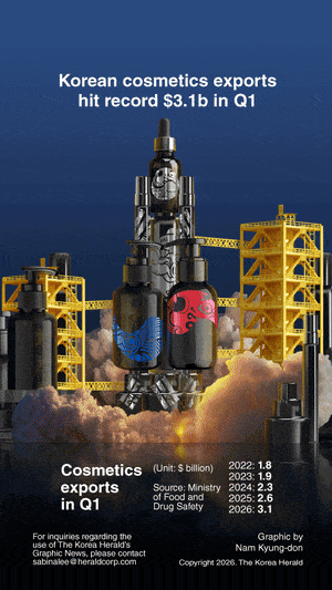 ![[Graphic News] Korean cosmetics exports hit record $3.1b in Q1](https://wimg.heraldcorp.com/news/cms/2026/04/26/news-p.v1.20260426.f59a10f767d0422eb392052eef23d78d_T1.gif)