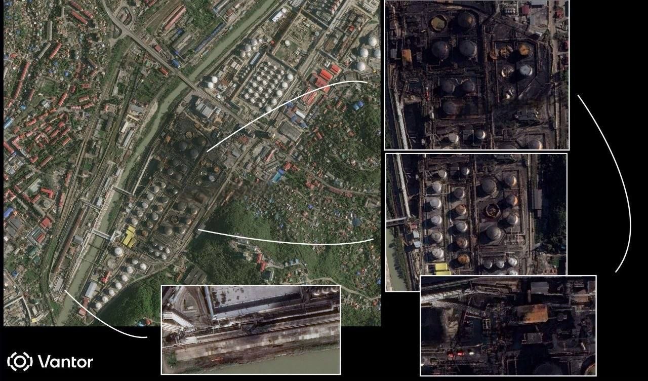 The consequences of the Ukrainian Armed Forces' strikes on the oil refinery in Tuapse, captured by satellite imagery. @Intelslava