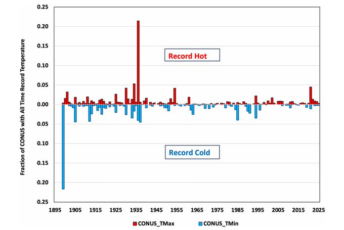 ICYMI - New study using USHCN data shows that instances of both hot and cold temperature extremes have declined across U.S. from 1899 to 2025 despite rising greenhouse gases.Source: https://link.springer.com/article/10.1007/s00704-026-06200-3@disclosetv