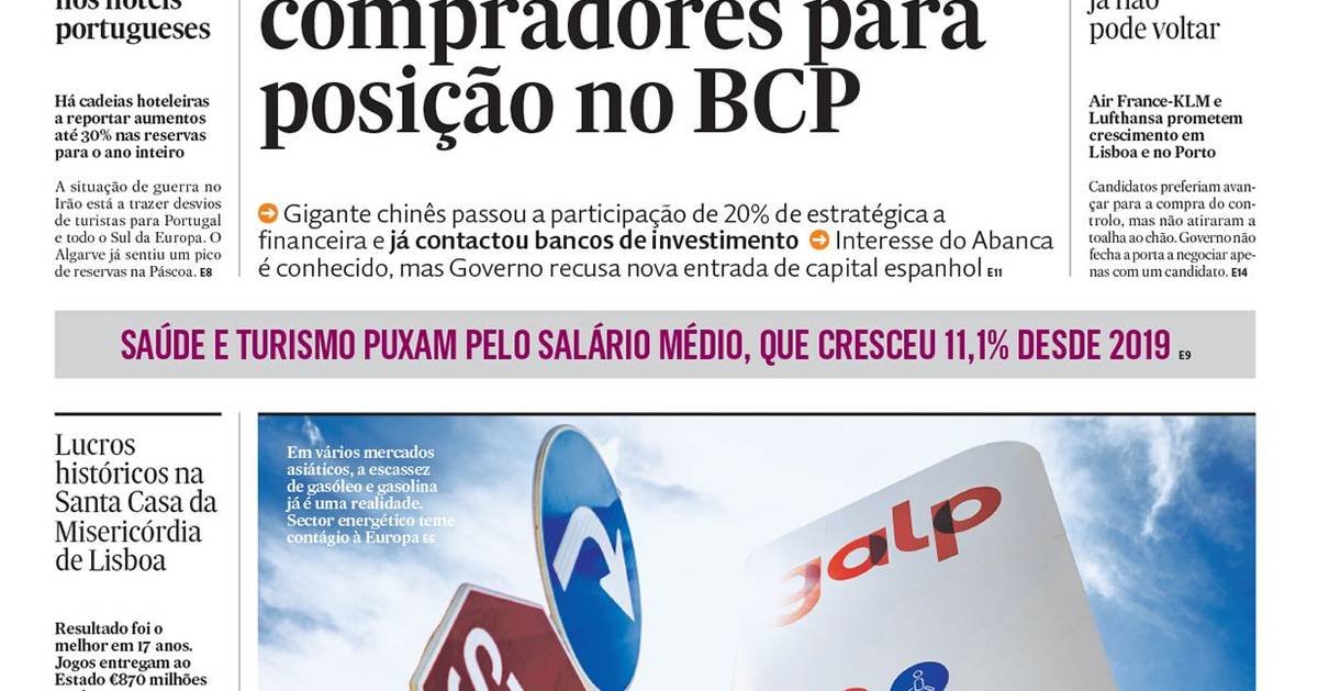 A 1ª página do Expresso Economia