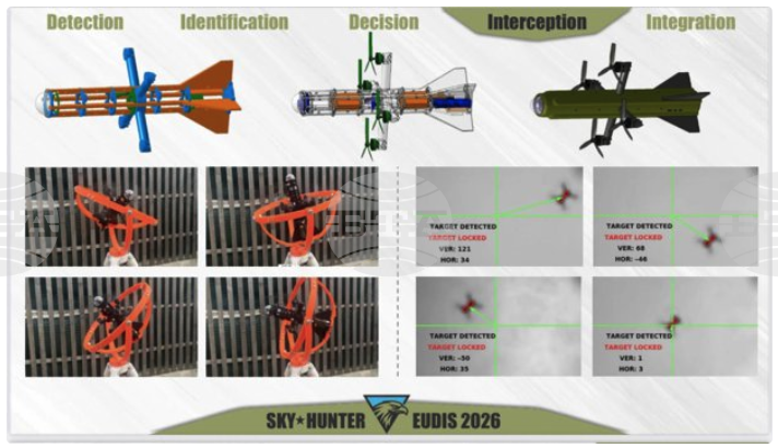 Интелигентна система за противовъздушна отбрана, способна да открива и неутрализира заплахи на ниска височина, разработена от екипа СкайХънтър“ (SkyHunter), спечели второто издание на хакатона EUDIS“ (European Defence Innovation Scheme), отбелязвайки втората победа на екипа в състезанието. Това предаде за БТА румънската агенция Аджерпрес. Събитието, организирано от Асоциацията на румънските технологични стартъпи (ROTSA) и посветено на дигитални иновации с двойна употреба, се проведе от 26 до 28 март в осем европейски държави под наслов Защита на въздушното пространство“.