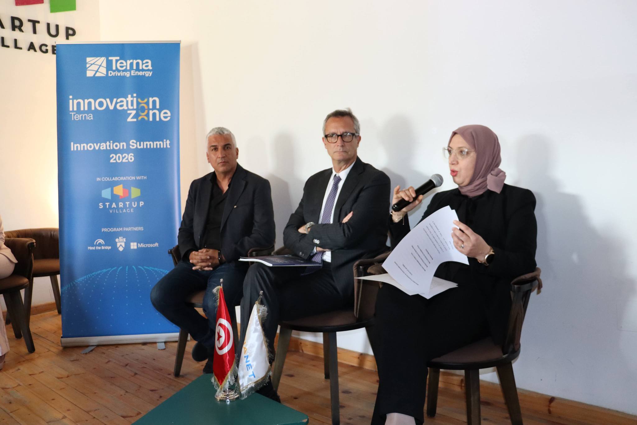 أشرفت رئيسة ديوان وزارة الصناعة عفاف شاشي الطياري مساء الثلاثاء 21-04-2026، على افتتاح أشغال الدورة الثانية من قمة تارنا للابتكار Terna Innovation Summit ببادرة من المؤسسة الإيطالية TERNA المشغل الرئيسي لشبكة نقل الكهرباء في أوروبا وبالشراكة مع قرية المؤسسات الناشئة Stratup Village