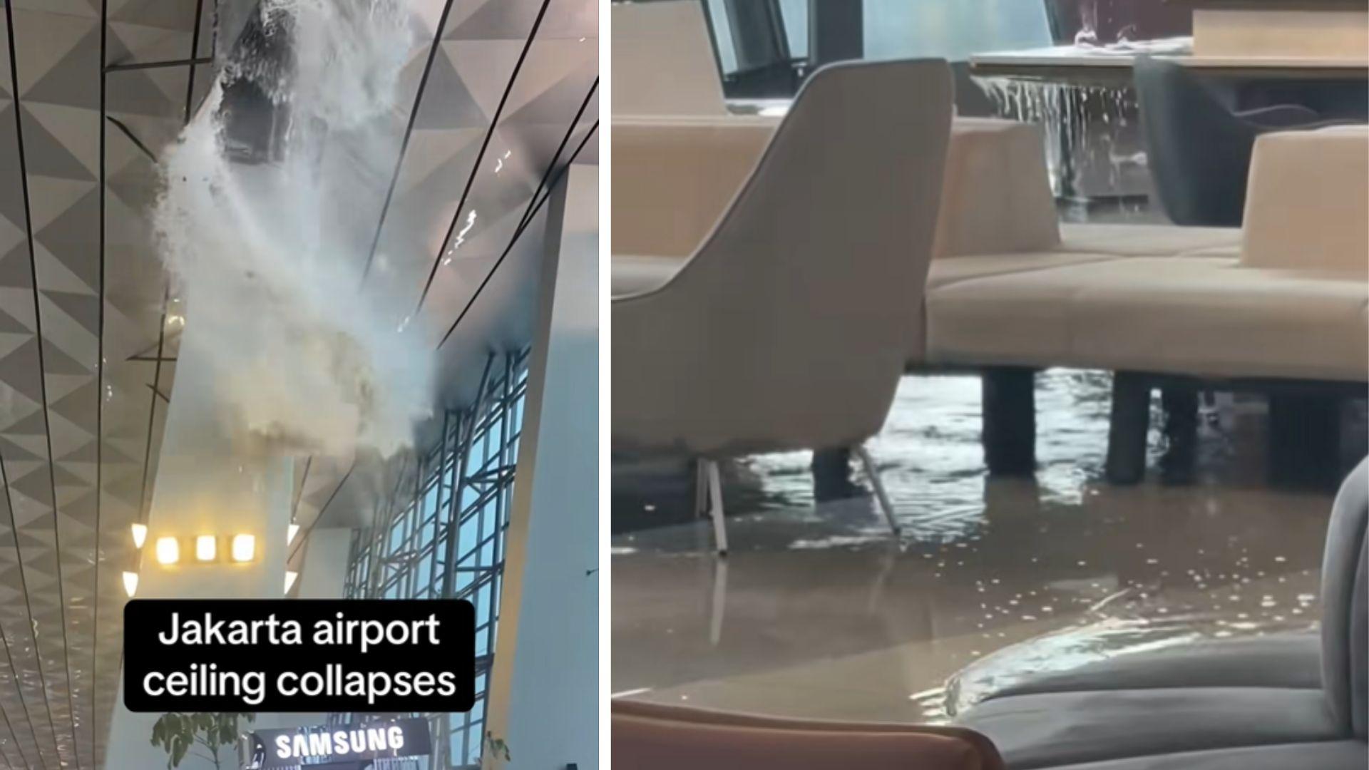 Nach schweren Unwettern stürzte ein Teil des Daches am Flughafen Jakarta ein und flutete die Ankunftshalle. Videos zeigen das Chaos.