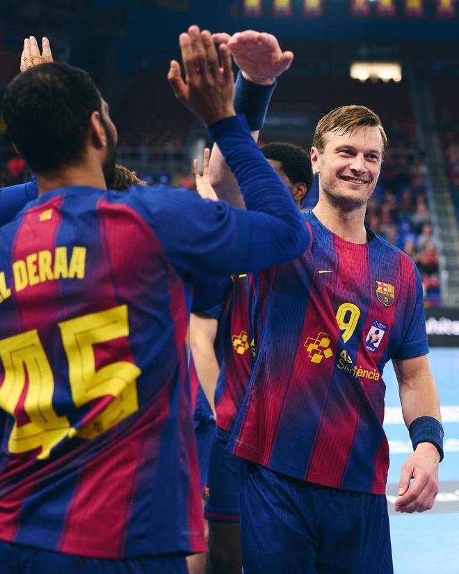 Un resultado que se explicaba, en parte, por la debilidad de la defensa de Ademar, que no había provocado ningún penalti, ni ninguna tarjeta amarilla o exclusiones a esas alturas de partido.Pese al dominio azulgrana, que llegó al descanso con un escandaloso 26-15 en el marcador, Carlos Ortega no se mostraba del todo satisfecho con el trabajo de su plantilla y preparaba ya cambios de cara a la segunda mitad.Paseo marcialEl paso por vestuarios apenas reflejó novedades en los esquemas de juego, ni en la dinámica, convirtiendo la última media hora en una especie de entrenamiento con vistas a los trascendentales cuartos de final de la EHF Champions que arrancarán el 29 de abril. Como muestra, la mayor ovación se la llevó Hallgrímsson al no poder detener unos siete metros. El guardameta islandés detuvo la bola en primera instancia pero rebotó en él y acabó dentro, levantando los aplasos del público y la sonrisa del portero.El Barça afrontó el tramo final con el piloto automático puesto, sin su habitual ritmo rápido e intenso, consciente de que su oponente se había rendido hace mucho. Con los deberes hechos, Ortega aprovechó para hacer rotaciones y reservar a su habituales con vistas a los próximos compromisos. El joven jugador del juvenil, Adrián Sola, habitual ya en las dinámicas del primer equipo, dispuso de minutos que aprovechó de la mejor manera, convirtiéndose en uno de los máximos goleadores del equipo, con un 100 de acierto: 6/6.El siguiente partido del Barça será este mismo miércoles en la pista del Rebi Cuenca, partido de la jornada 26 adelantado por la disputa de los cuartos de final de la Champions. Una cita a la que puede llegar ya con el título bajo el brazo.