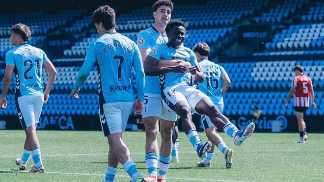 Remontada de infarto del Celta Fortuna en Balaídos ante el Bilbao Athletic para consolidar aún más la segunda plaza de la clasificación. Cuando peor tenían las cosas los de Fredi Alvarez el filial céltico encontró el talento y el acierto para llevarse el partido con dos goles en el tiempo extra que desataron la locura en las filas viguesas. Hugo Alvarez y Somuah, que había entrado poco antes en el campo, dieron la vuelta al partido y permiten a los célticos mantener los siete puntos sobre su inmediato perseguidor cuando restan ocho jornadas para la conclusión del campeonato.Con los rivales apretando por detrás (el Celta Fortuna iniciaba el partido con un margen de cuatro puntos sobre el tercero) el duelo entre filiales era especialmente importante.