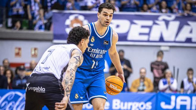 El Burgos sostuvo el pulso durante una gran primera mitad, pero acabó cediendo ante la superioridad física, profundidad y talento del equipo blanco.El conjunto burgalés arrancó con personalidad y descaro frente al gigante blanco. Juan Rubio inauguró el marcador y Happ tomó pronto protagonismo en la pintura para sostener a los de Porfi Fisac en un inicio de alto ritmo (5-0), aunque el talento exterior del Real Madrid apareció rápidamente para equilibrar el choque. Mario Hezonja y Okeke lideraron el primer arreón visitante, permitiendo a los de Sergio Scariolo abrir una primera ventaja significativa mediado el cuarto (9-18) ante un Burgos que sufrió durante varios minutos para contener la velocidad ofensiva madridista. Image ID: 129022406 Sergio Scariolo, entrenador del Real Madrid EFE /clip/a7ea522f-27fe-4dcf-ad55-08591f858ecd_source-aspect-ratio_default_0_x600y225.jpg 1200 675Lejos de descomponerse, el cuadro burgalés reaccionó con carácter y Neto, Meindl y Almazán devolvieron energía al equipo para evitar que el líder rompiera el partido antes del final del primer periodo, que concluyó con un ajustado 20-25. En el segundo cuarto, el Real Madrid volvió a amenazar con escaparse tras elevar la renta hasta los nueve puntos (24-33) máxima hasta el momento, aprovechando su dominio físico en la pintura y el impacto de jugadores como Izan Almansa y Alex Len cerca del aro.Pero una vez más emergió el carácter competitivo de los indomables de Porfi y Happ, muy sólido en la zona, lideró la reacción local junto a Samuels y un inspirado Meindl para culminar un parcial que devolvió la igualdad al marcador hasta el 35-35 y obligó a Sergio Scariolo a detener el encuentro. Incluso logró ponerse por delante el conjunto burgalés con una canasta de Shackelford (37-35), en el mejor momento del partido para los locales, aunque el Madrid respondió con oficio en el tramo final para llegar por delante al intermedio gracias a la dirección de Campazzo y el acierto interior de Len (39-43). Image ID: 129022395 Trey Lyles, en el partido de Liga Endesa ante San Pablo Burgos EFE /clip/309a7b47-a2b5-45fe-bc0c-200f055d7d55_source-aspect-ratio_default_0_x600y225.jpg 1200 675Tras el paso por vestuarios, el Real Madrid elevó definitivamente su nivel competitivo y comenzó a inclinar el partido a su favor. Con Hezonja asumiendo el liderazgo ofensivo, el conjunto blanco encontró continuidad en ataque y castigó con dureza cada desajuste defensivo del San Pablo Burgos.El alero croata fue el gran protagonista del tercer cuarto y lideró el primer gran estirón visitante, permitiendo al Madrid abrir una renta superior a la decena de puntos ante un Burgos que, pese a resistir con acciones de Meindl, Happ y Shackelford, ya no encontraba la misma fluidez ofensiva de la primera mitad. La profundidad de plantilla madridista y su superioridad física en la pintura comenzaron a marcar diferencias y Len, Almansa y Procida hicieron mucho daño cerca del aro y permitieron al líder mantener el control del encuentro al cierre del tercer parcial (57-66).En el último cuarto, el Real Madrid terminó de romper definitivamente el partido y un parcial demoledor de salida disparó la ventaja visitante por encima de los veinte puntos y dejó sin capacidad de respuesta a un Burgos castigado por el desgaste acumulado. Pese a ello, el conjunto de Porfi Fisac no dejó de competir hasta el final y encontró premio parcial en varias acciones de Shackelford, Meindl y Nzosa, mientras que el tramo final sirvió también para el debut del joven Marcos Bella con el primer equipo.