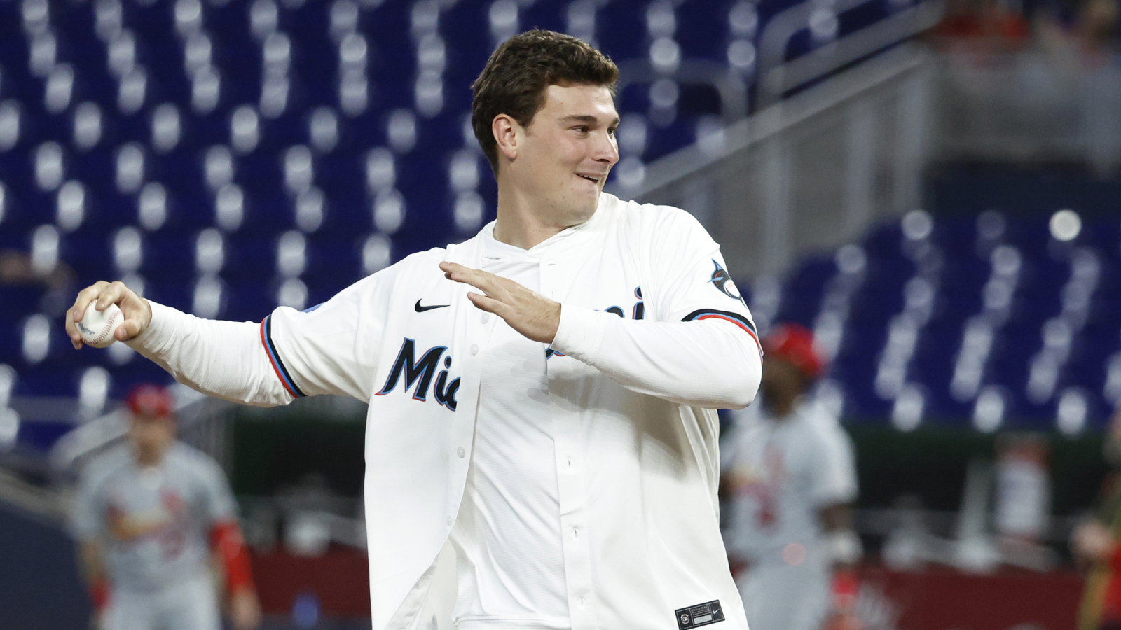 Fernando Mendoza's ceremonial first pitch was a little bit wild