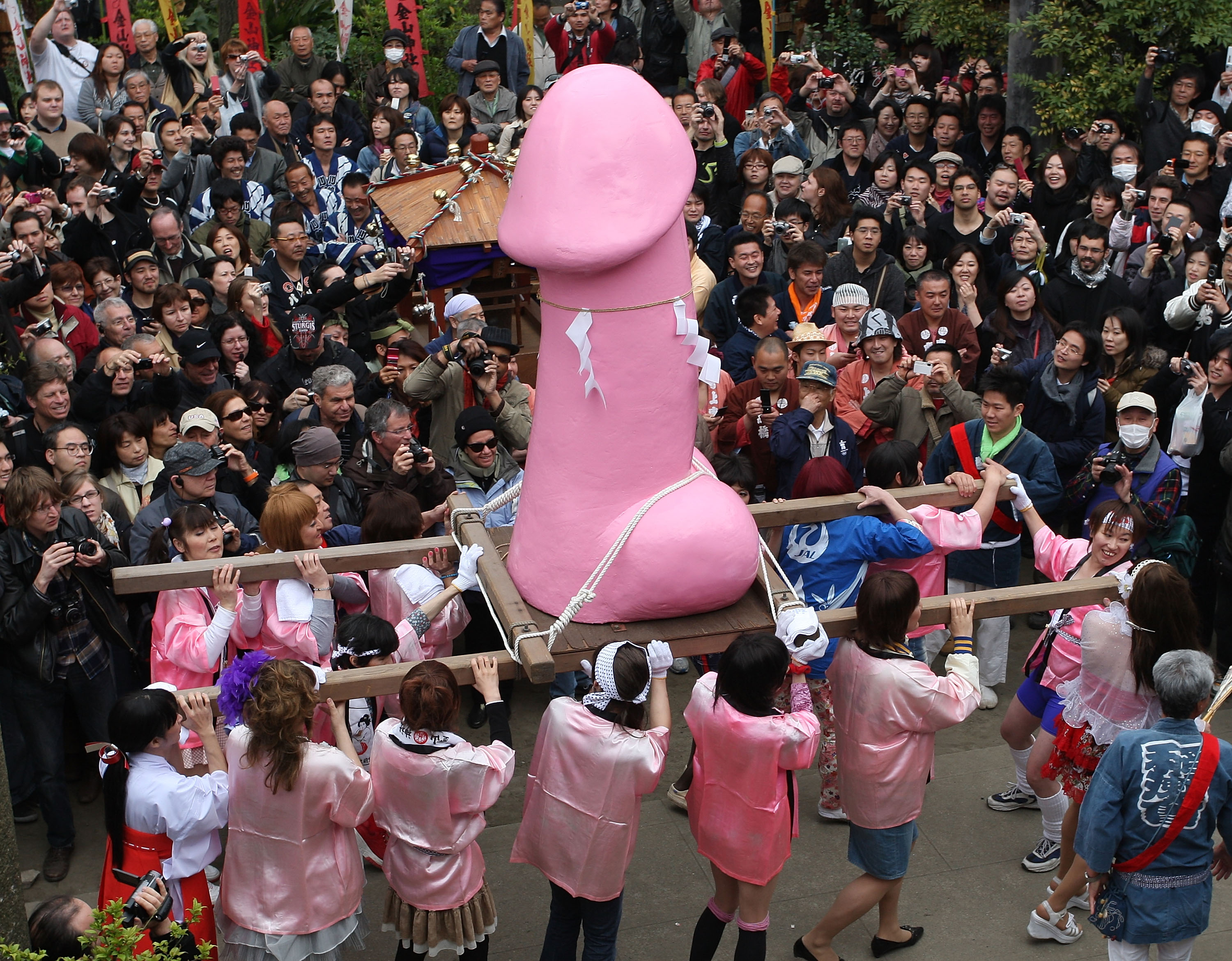 Люди вышли на улицы с огромными пенисами в руках