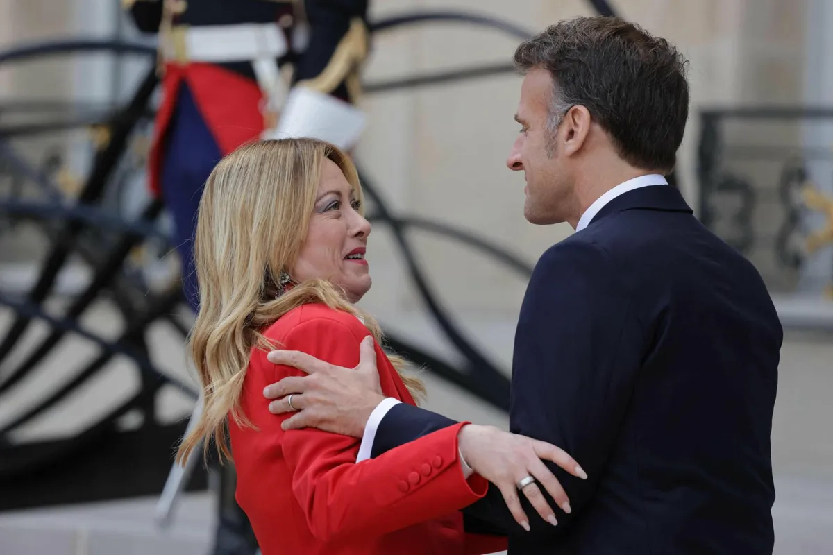 Francuski predsjednik Emmanuel Macron dočekao je talijansku premijerku Giorgiu Meloni ispred Elizejske palače u Parizu, gdje je održana konferencija o