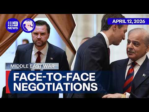 Negotiations began between the United States and Iran on Saturday, days after a fragile ceasefire halted fighting and brought both parties to the table in Pakistan. | *Subscribe and 🔔: http://9Soci.al/KM6e50GjSK9* *Get more breaking news at 9News.com.au: http://9Soci.al/iyCO50GjSK6* FOLLOW 9News Australia ► Facebook: https://www.facebook.com/9News/ ► Twitter: https://twitter.com/9NewsAUS ► Instagram: https://www.instagram.com/9news/ Join 9News for the latest in news and events that affect you in your local city, as well as news from across Australia and the world.
