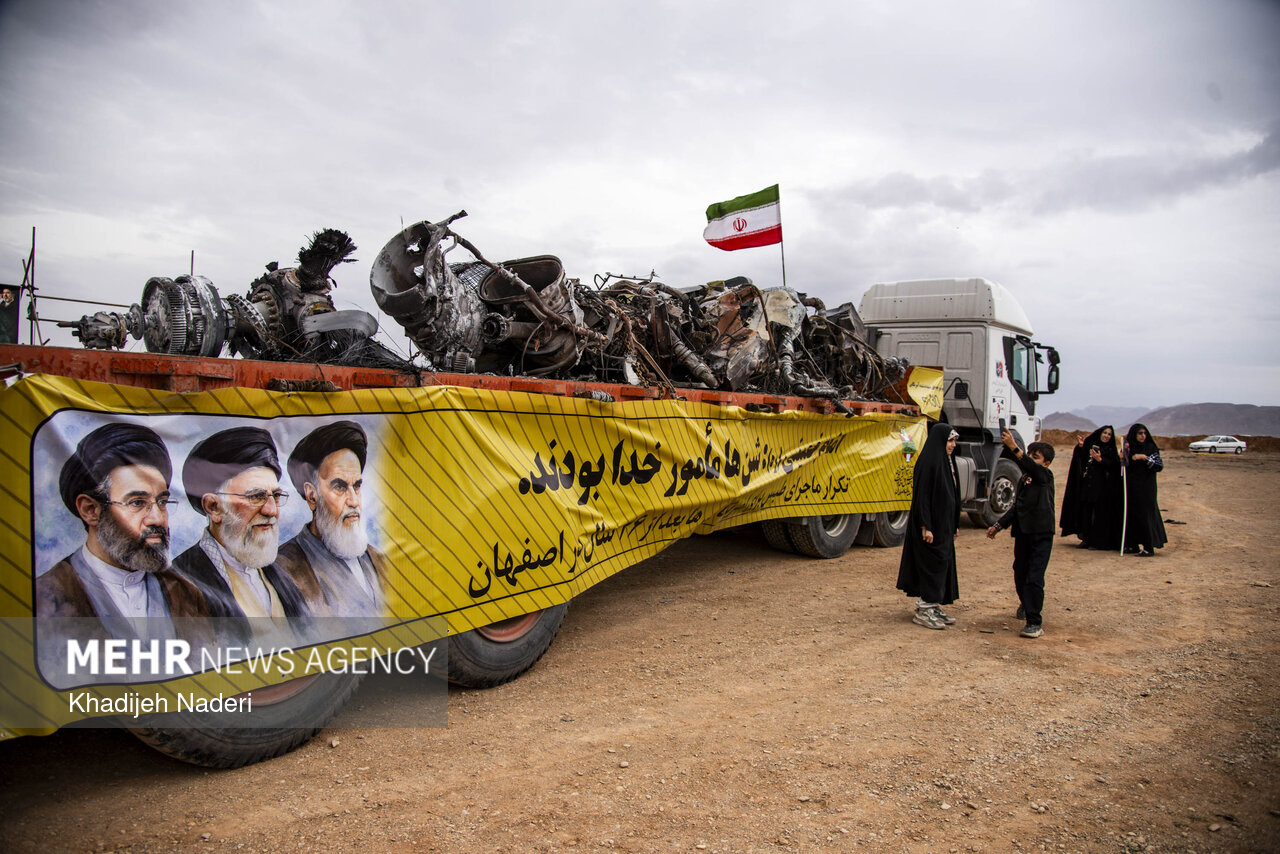 ISFAHAN, Apr. 26 (MNA) – On the occasion of Ordibehesht 5 (April 26), which marks the anniversary of the Divine Miracle on Tabas Desert, martyr-fostering people in Isfahan province gathered at the site to commemorate the failed US-Israeli operation.