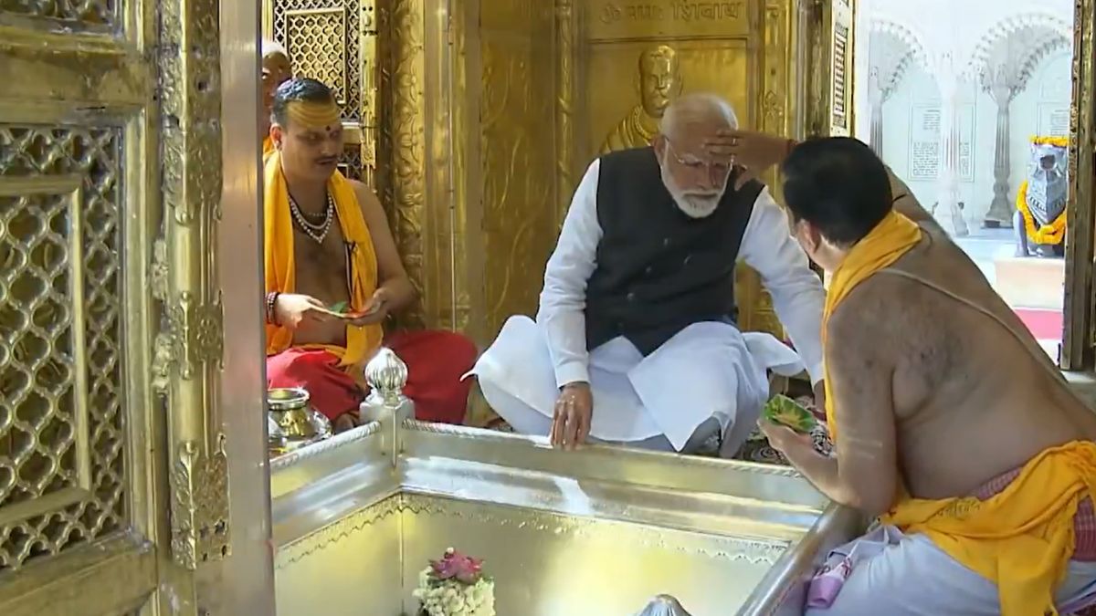 PM Modi offers prayers at Kashi Vishwanath Temple in Varanasi, to attend Mahila Sammelan
