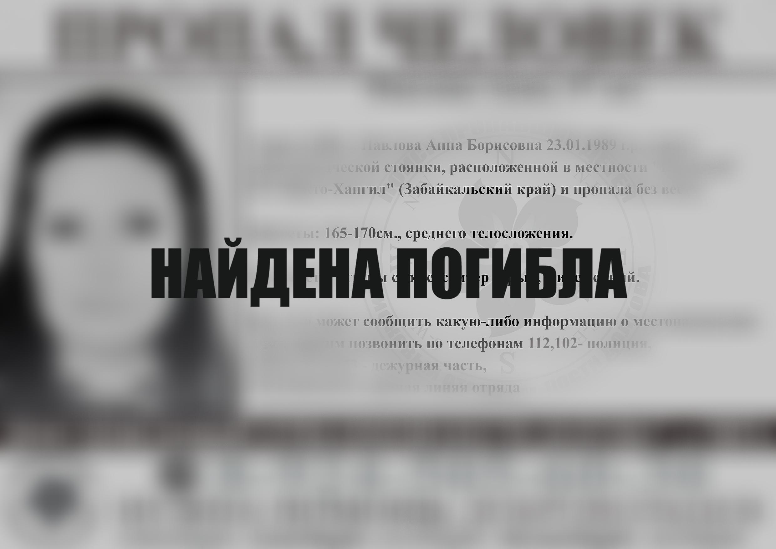 Пропавшую несколько дней назад девушку в Забайкалье нашли мертвой