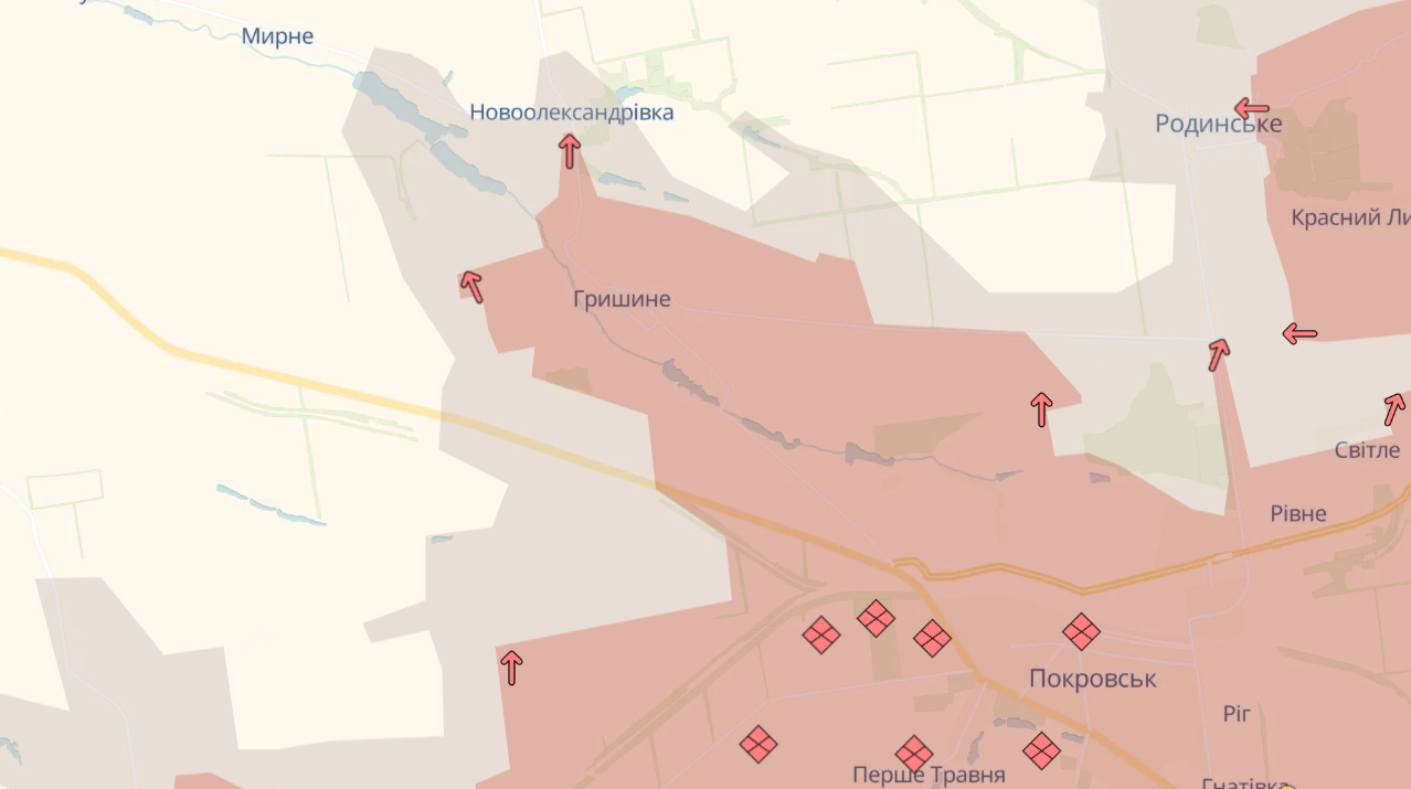 DeepState has reported that Russian forces have advanced near Hryshyne and Novooleksandrivka in Donetsk Oblast.