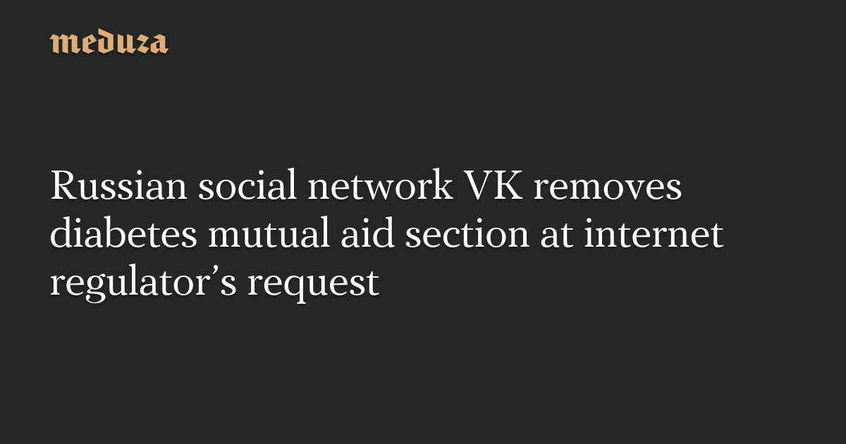 Russian social network VK removes diabetes mutual aid section at internet regulator’s request