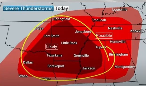 Severe Thunderstorms Set To Hit North Louisiana This Afternoon