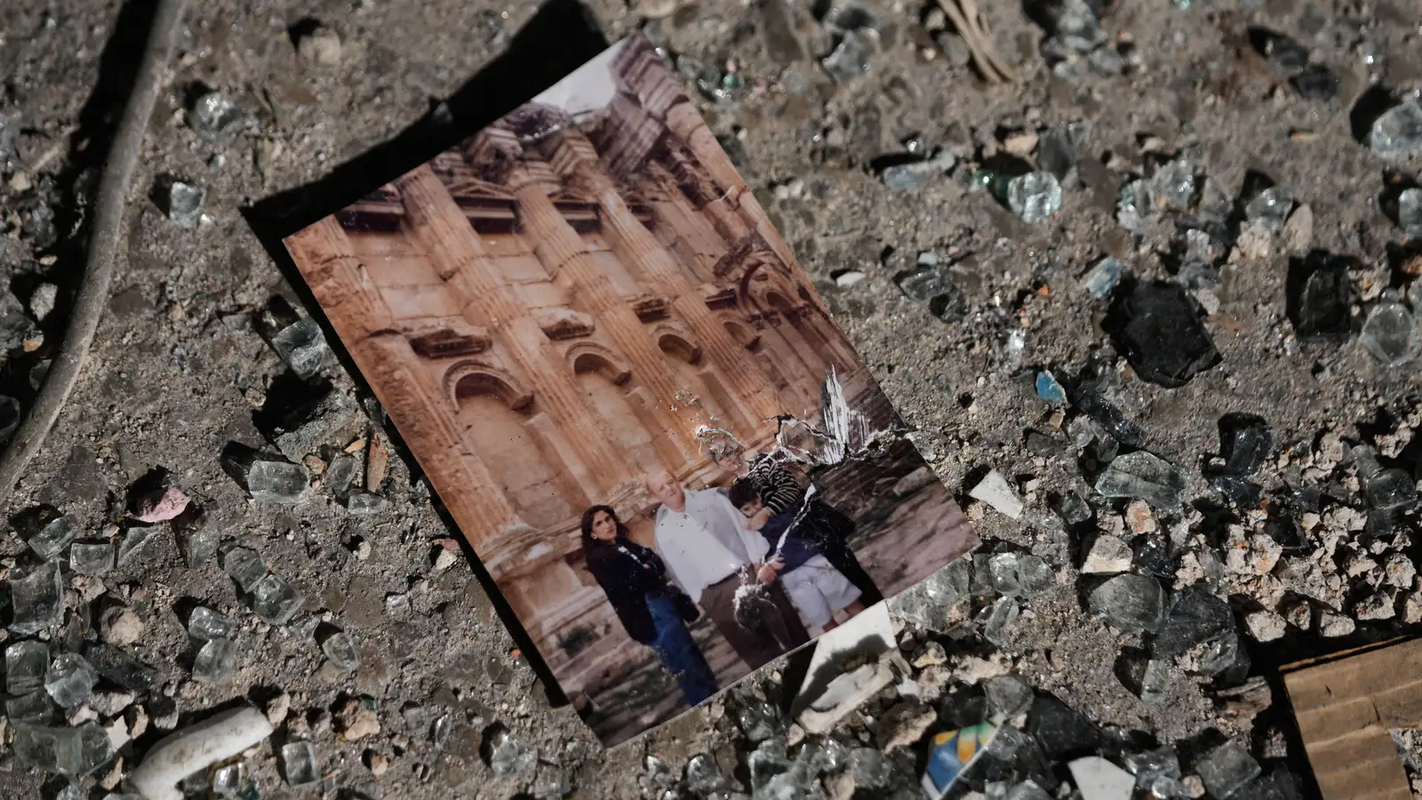 Ísraelsher sagðist beina árásum sínum á staði samtakanna en AP sagði að nokkrar árásir í gær hefðu verið gerðar á þéttbýl íbúðarsvæði í höfuðborginni á annatíma, sem hefði leitt til mikils mannfalls hjá almennum borgurum. Ljósmynd af fjölskyldu liggur í rústum húss sem varð fyrir loftárás Ísraelshers í Beirút, höfuðborg Líbanons, í dag.AP / Hussein Malla