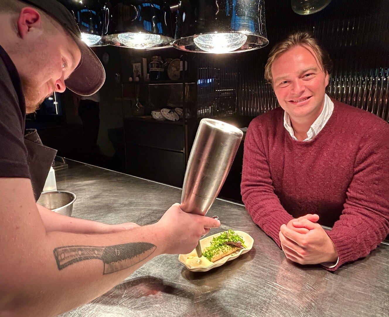 Tono Soravia wirft im Collina am Berg“ die Angel nach Gästen aus – mit Fisch aus den Gewässern seiner Familie.