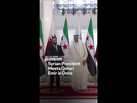 Qatar’s Emir Sheikh Tamim bin Hamad Al Thani receives Syrian President Ahmed al-Sharaa in Doha.