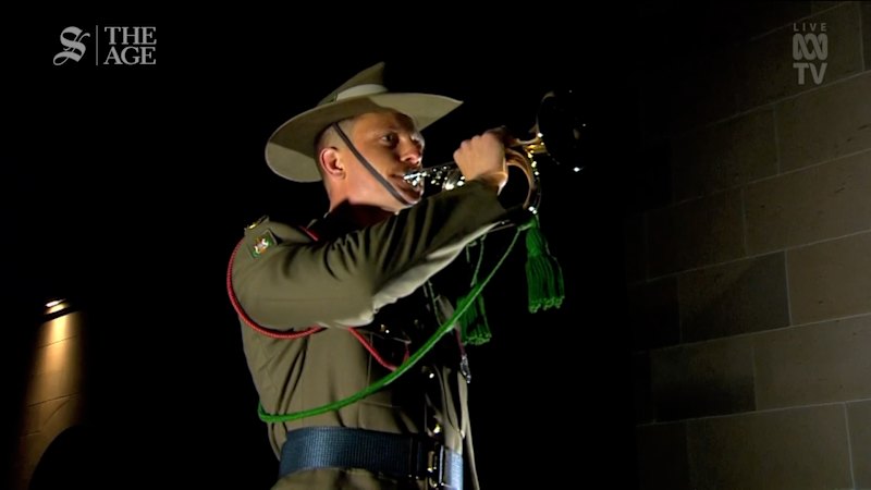 The Last Post is performed at the Anzac Day Dawn Service at the Australian War Memorial in Canberra