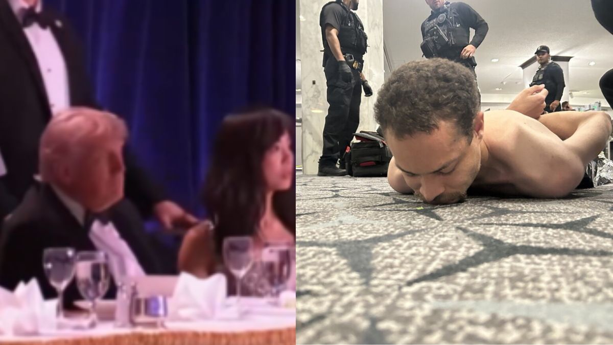 The first purported image of the suspected shooter has been shared by US President Donald Trump following the gunfire scare that disrupted a high-profile press dinner in Washington. The photo shows the man lying face down with his hands cuffed behind his back, surrounded by heavily armed security personnel.