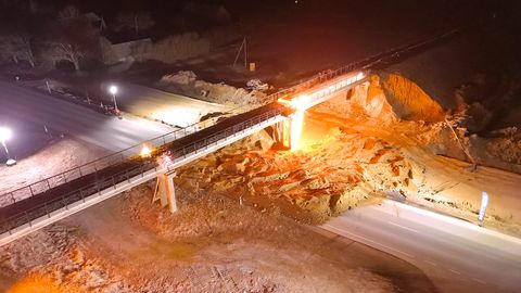 Taevas siras peaaegu täiskuu, kui inimesed kesknädala hilisõhtul Pärnu-Jaagupi külje all, Halinga lähistel Via Baltical jalutasid. Kõndisid seal, kus tavaliselt vurab hulgaliselt veokeid ja sõiduautosid. Nüüd oli suur maantee tavaliiklusele suletud ja huvilistel ühine siht: minna vaatama kitsarööpmelise Halinga raudteeviadukti varistamist.